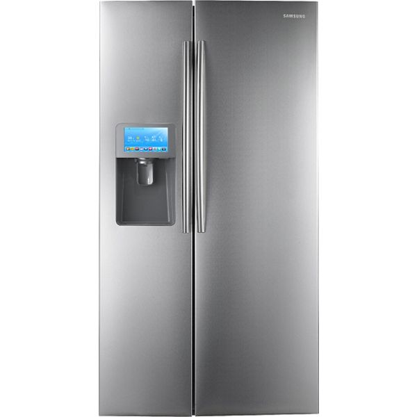 Samsung RSG309AARS 29.6 cu. ft. Side by Side Refrigerator with Spill Proof Glass Shelves, Twin Cooling Plus System, Power Freeze/Cool, External Ice/Water Dispenser and WiFi 8" LCD Screen